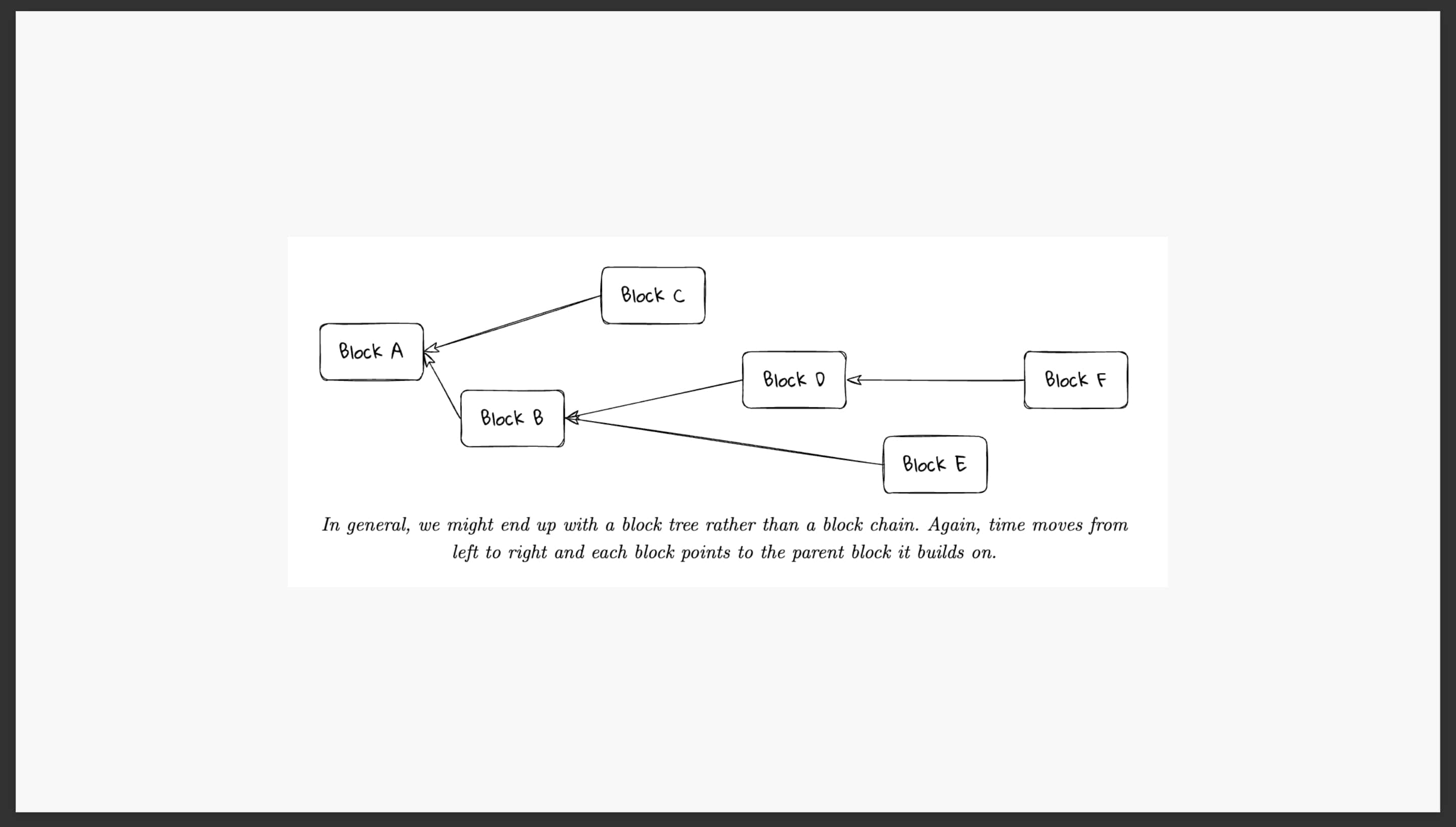 Nowadays, how Ethereum works is that we have the users of Ethereum submitting transactions, with no single entity possessing the globally complete bird’s eye view. It’s a distributed system. So the transaction log naturally looks like a tree, because the different copies of the chain would be looking at different views, and they append new blocks to their frontier (head). As these copies merge, you get a tree. But we want a blockchain, not block-tree. We want a canonical sequence of events that is agreed upon globally. How do you get that?