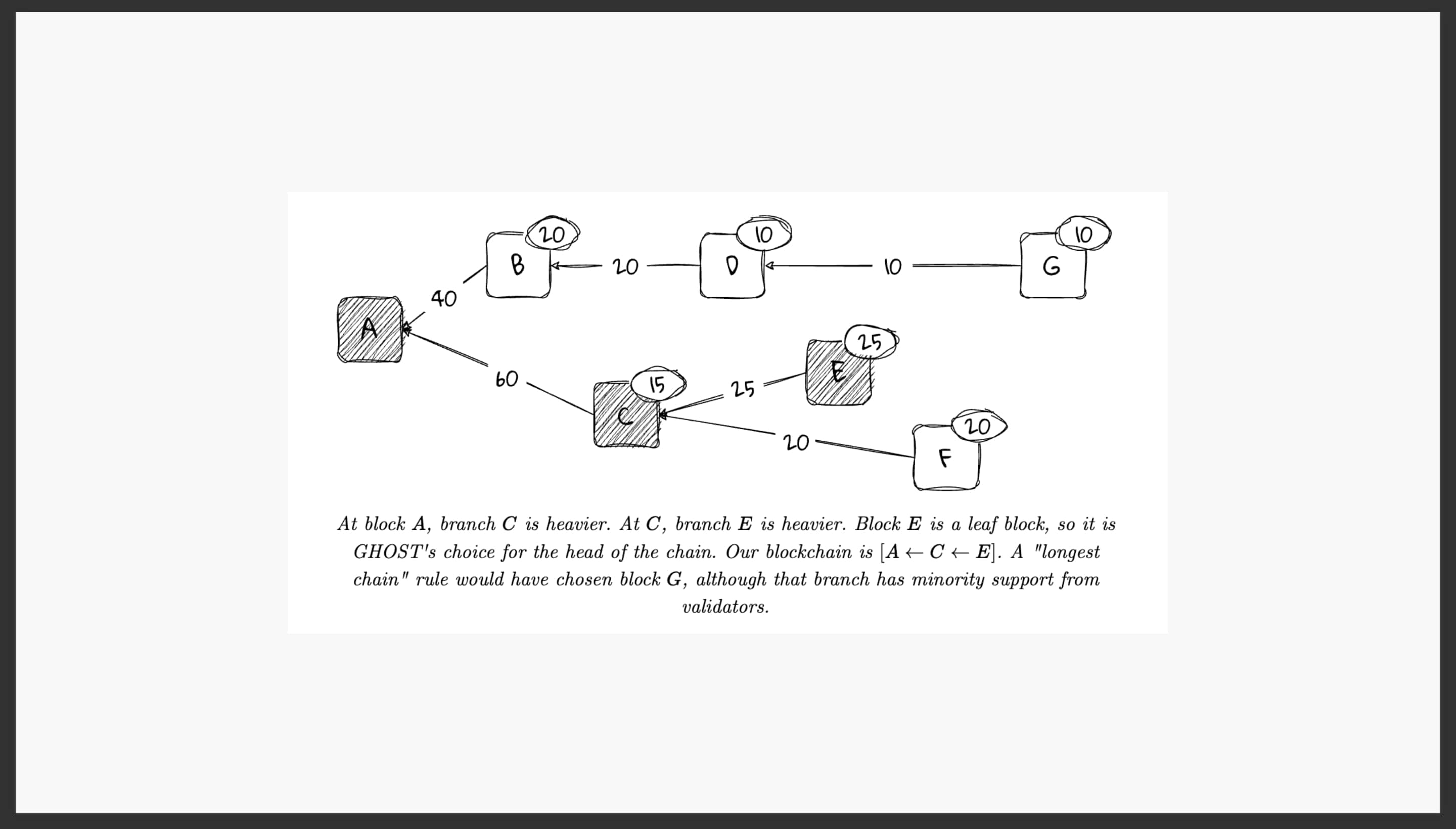 Ethereum’s fork choice rule is called the LMD-GHOST.