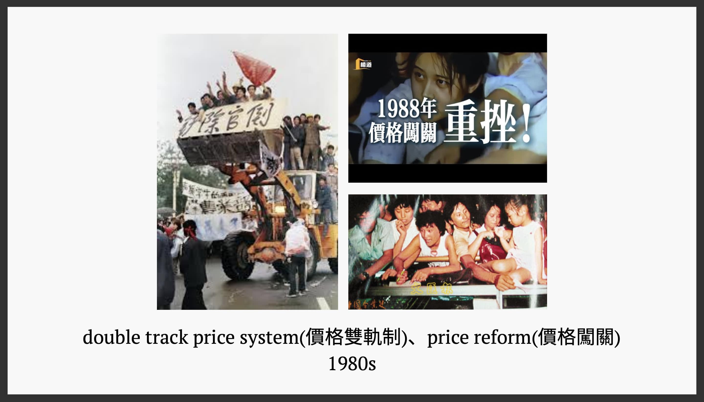 What happened was that the cultural revolution ended. There were plans to transition from the planned economy to the market eocnomy. In a planned economy, prices are dictated. In a market economy, prices are driven by the supply and demand in the markets. You can imagine in the planned economy post-revolution, productivity was destroyed, commodity prices were dictated to be artificially low while the demand for these commidities was overwhelmingly strong. The transition into the market economy, if done without control, would be pretty violent. So there was a policy in place called the double-track price system (價格雙軌制). For each commodity, there would be a quota. Below this quota the price is dictated, in the planned regime. Above the quota the price is market price. Arbitrages opportunities were exploited by people with relationships with the government officials (官倒). They would buy at low planned prices and sell back to the public at high market prices. A major company co-created by the eldest son of Deng Xiaoping was involved (中國康華發展總公司). People were angry and the double-track price system was cracking. In 1988, a price reform was in the planning, where in a short period of time the planned commodity prices were to be forcefully raised to market prices on a schedule (價格闖關). Tragically, the idea of the policy reform leaked before it was implemented. People expected everything would become much more expensive very soon, so they withdrew money from the banks and began panick-buying. Banks were going bankrupt from the mass withdrawals. The price reform was never implemented. Public discontent from these events all contributed to the 1989 protests.