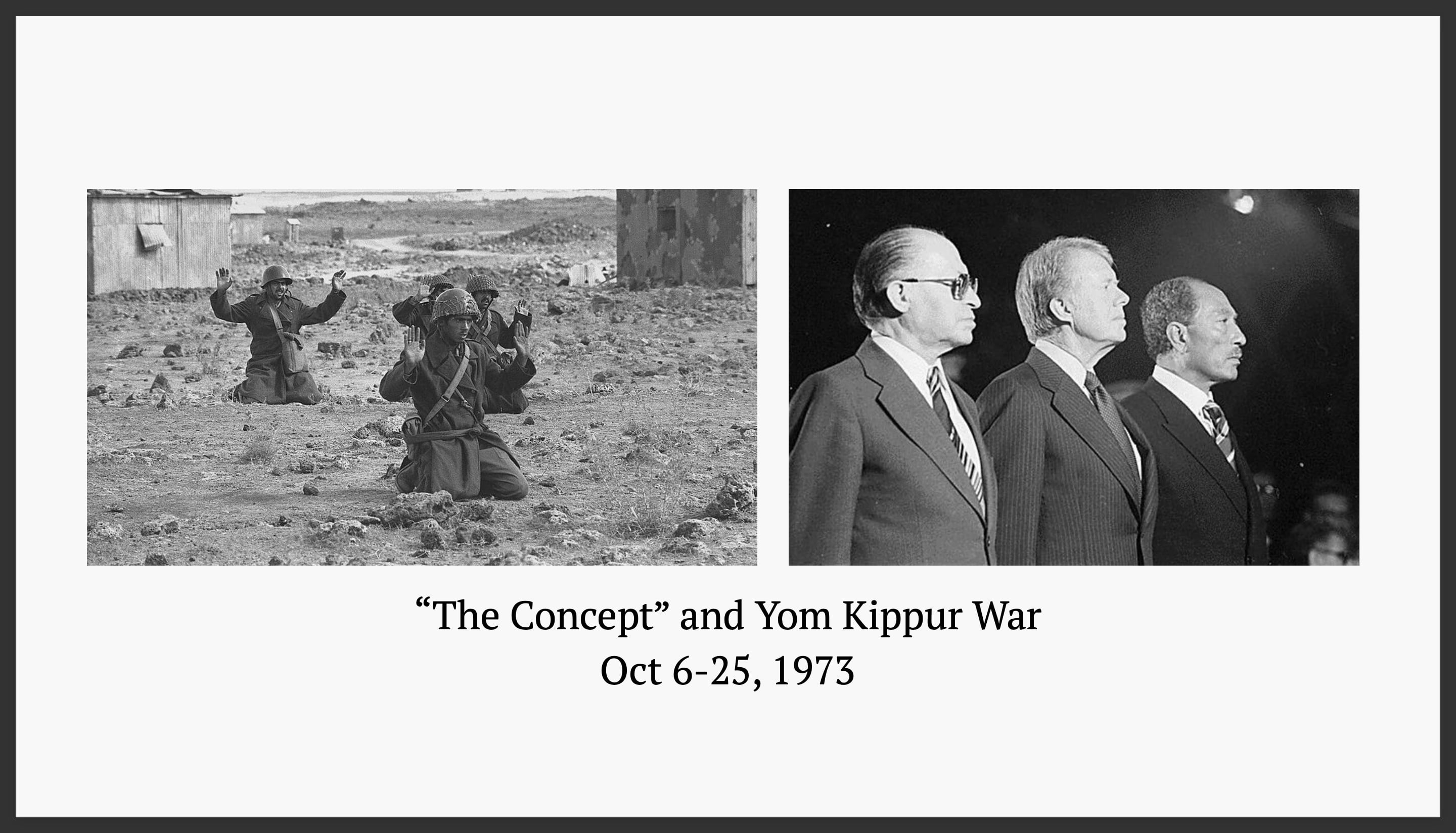 The Yom Kippur War occurred in 1973 on Yom Kippur, the holiest day for the Jewish people. For context, Israel’s intelligence and military leadership had held on to “The Concept” since Israel won the Six-Day War in 1967. The idea of The Concept is that (1) Egypt would not start a war with Israel until their air force recovers (Egypt lost nearly half of its air force on the first day of the Six-Day War) (2) Syria would not start a war with Israel unless Egypt attacks as well. The Concept turned out to be incorrect. Egypt and Syria coordinated a successful surprise attack on October 6, 1973. Israel lost around 1300 soldiers in the first 3 days.