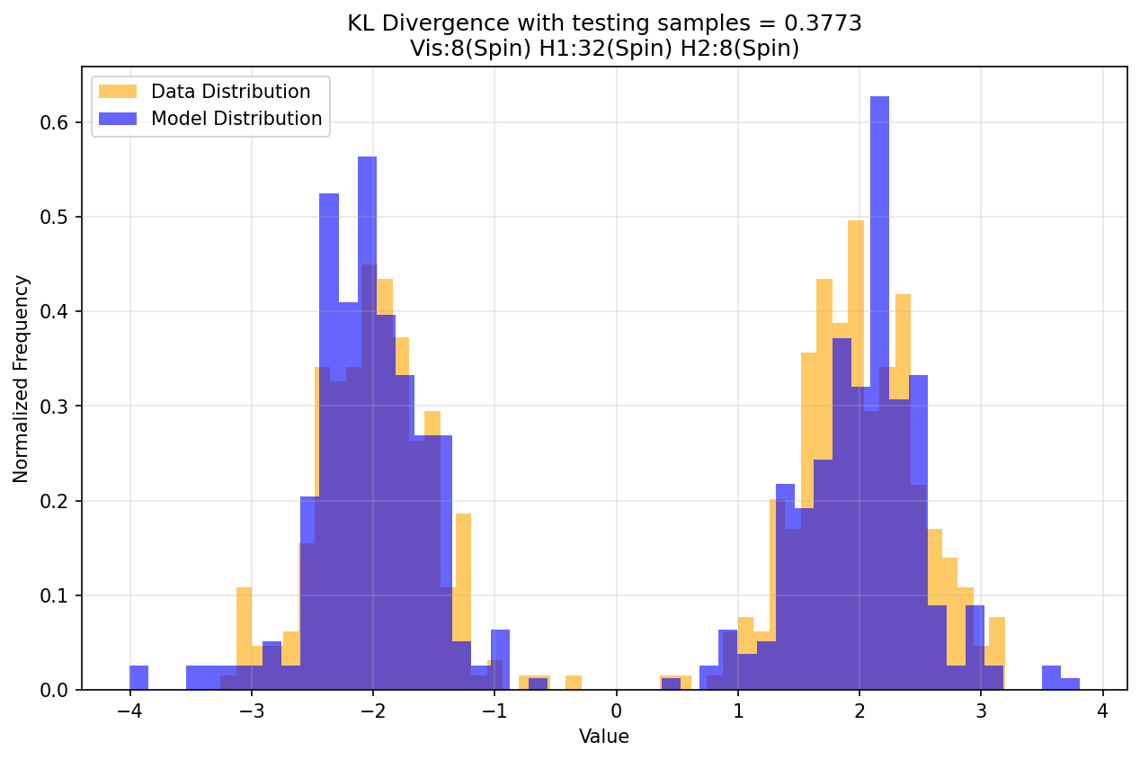 Meanwhile, Extropic announced its custom ASIC for probabilistic computing and a library that simulates their chip’s capability called THRML. Custom ASIC for energy-efficient ML has a special place in my heart, as I struggled with it during my PhD research and my work at Lightmatter 2019-21. I took at look at Extropic’s paper and decided to get my hands dirty with THRML and build a probabilistic model trained in Variational Monte Carlo (VMC) for a simple quantum system.